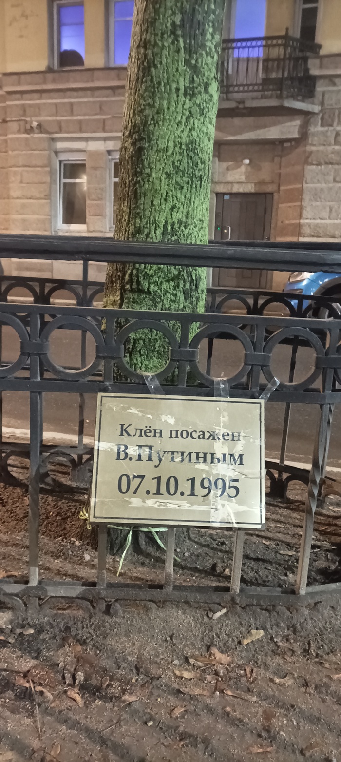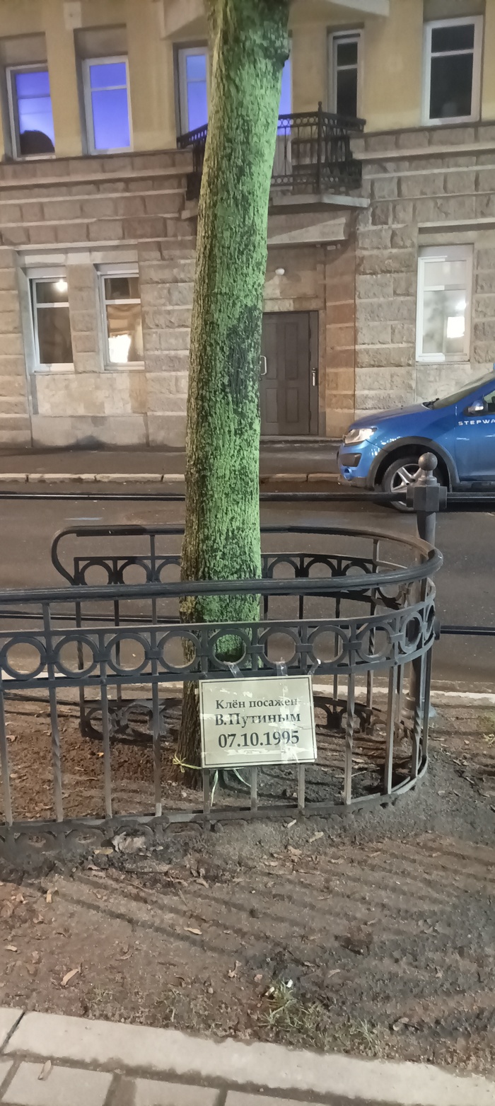 Подрабатывал курьером, обнаружил вот такой Клён, посаженный президентом РФ Владимиром Владимировичем Путиным в 95 году⁠⁠