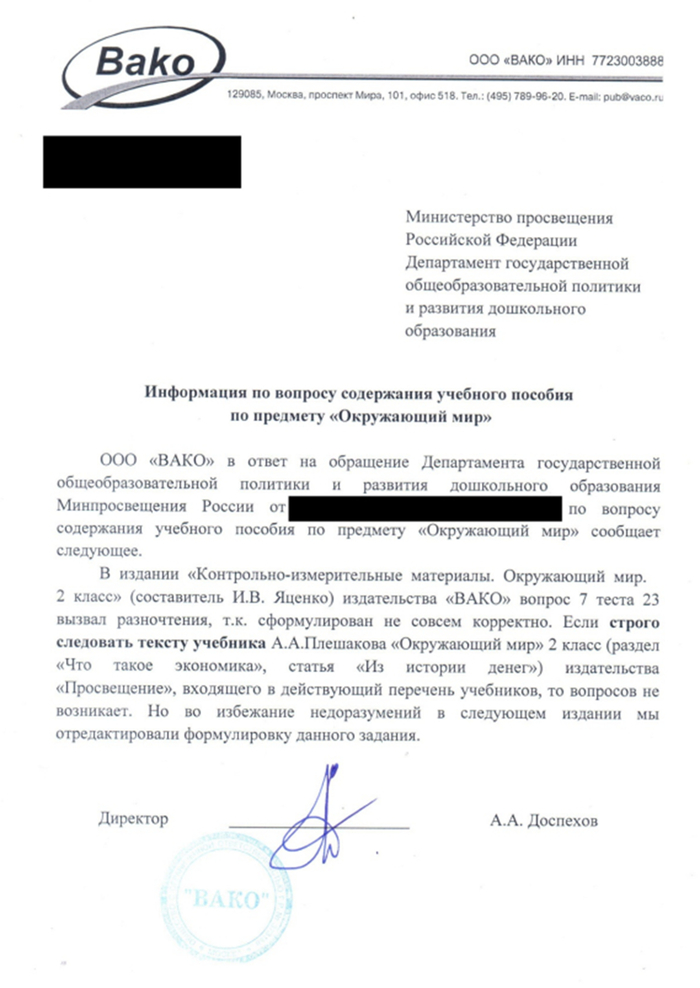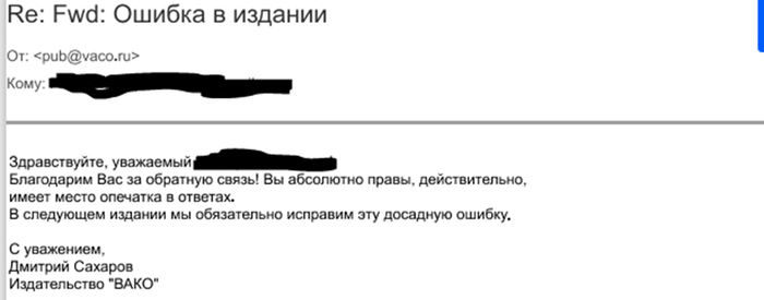 Ну ладно...дай думаю погляжу на приложенный ответ издательства "ВАКО" (хотя мы же вроде получали ответ от него, но вдруг блеснут чем-то новым).