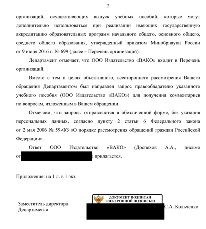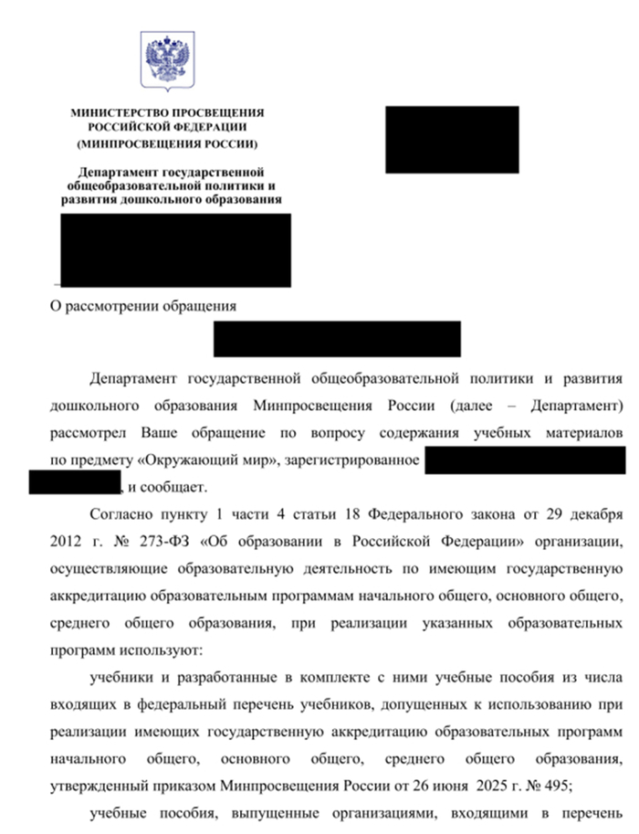 Понимаю, что для МинПросвещения все звезды сошлись и отвечать придется им и просто начинаю ждать. Через какое-то время получаю ответ. Начинаю читать...