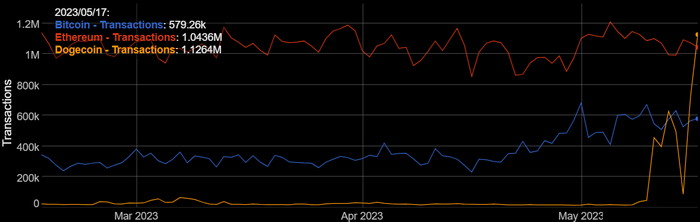 Генезис-блок был выпущен 6 декабря 2013 года, а 8 декабря состоялся официальный анонс Dogecoin. Через несколько часов после появления монеты был создан майнинг-пул и сформирован первый блок.