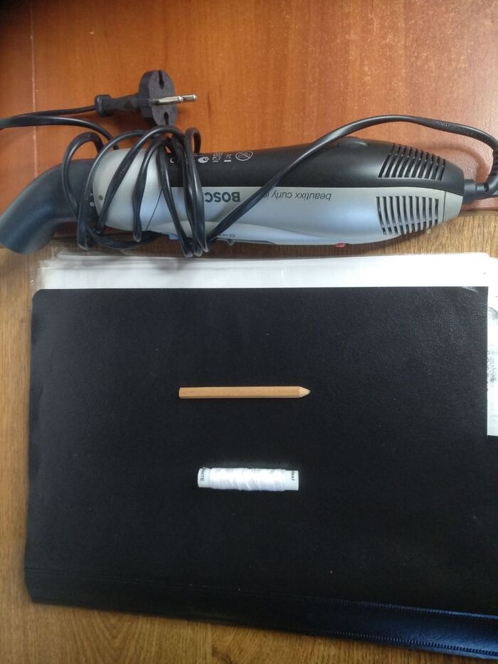 Для этого мне понадобится:- канцелярская пластиковая папка для бумаг (тонкая и гибкая ), карандаш (диаметр карандаша выбрать любой), нитки швейные, фен обычный для волос.