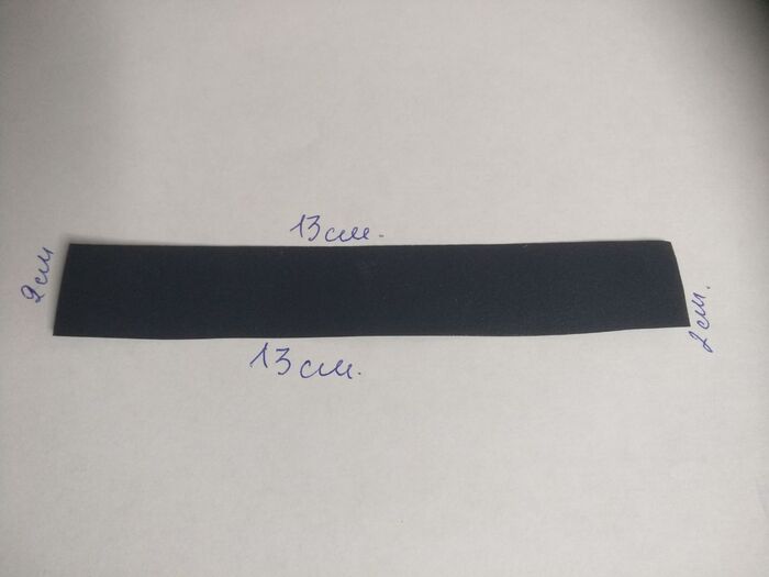 Из папки я вырезала полоску 2см /13 см. Можно вырезать любой длины и ширины, в зависимости от желания какой длины будут ресницы. При такой длине можно сделать сразу ресниц на несколько кукол за один раз.