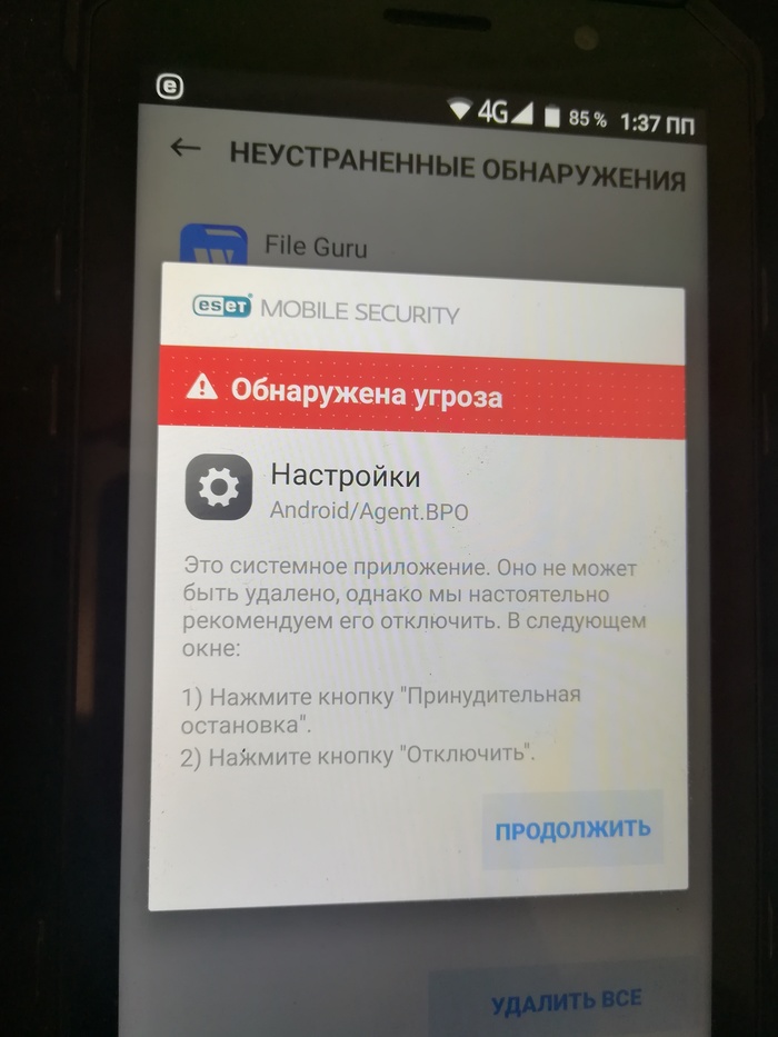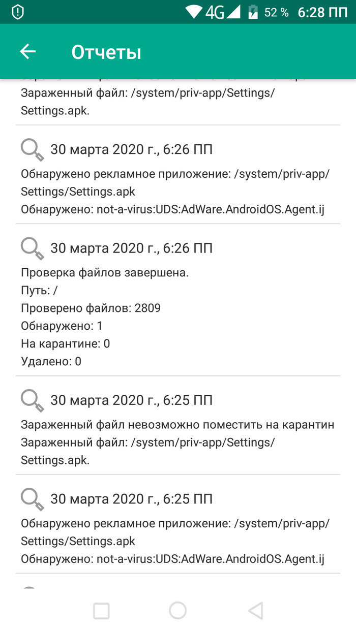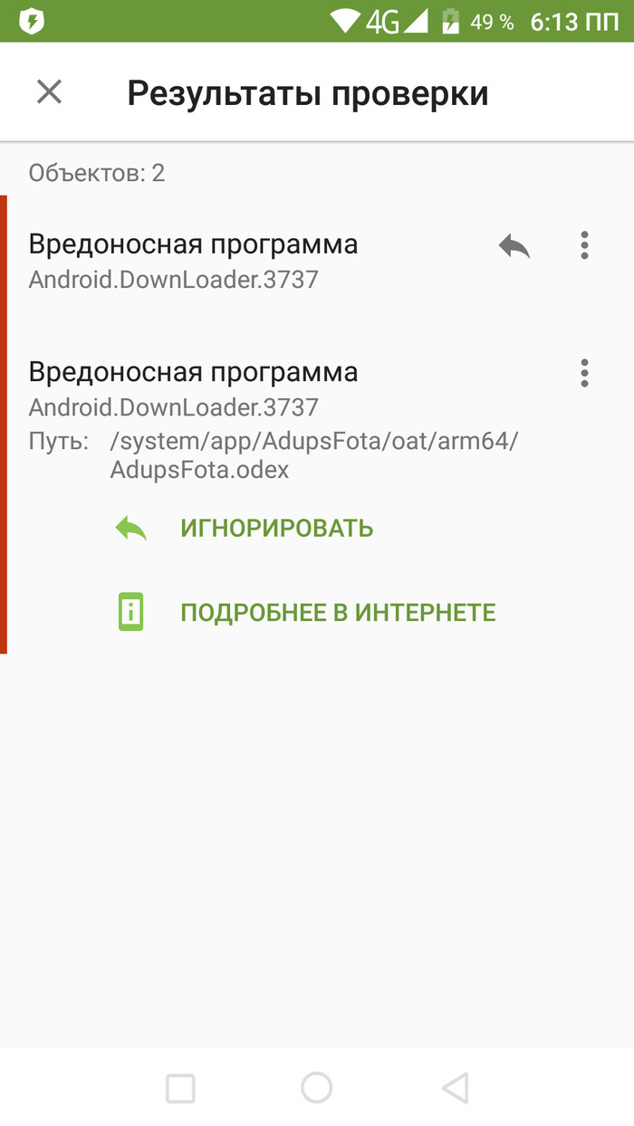 Потом, ради интереса, проверили смартфон Dr. Web'ом и Касперским.