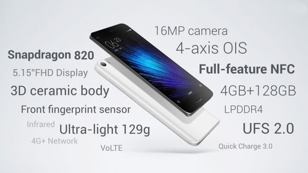 Характеристики Xiaomi Mi4s выглядят так: