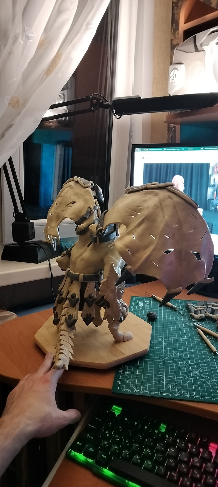 Дальше идет обработка швов инструментом. Когда я изучала туториалы по работе с eva, то решила для себя, что буду приобретать мини-дрель. Без этого инструмента мало что сделаешь. Им я не только обрабатывала края, стыки, убирала швы и лишний клей, но и наносила рельеф, боевые сколы, вытачивала позвонки и косточки для меча.
