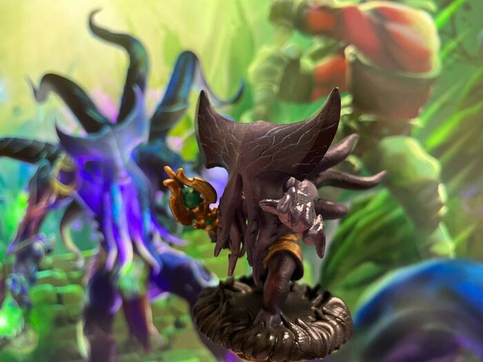 b) Рожденный наследник сатира, Rikimaru учился у самых могущественных воинов его расы. Однако, власть Пылающего Легиона развратила многих из его рода, превращая их в безумных животных. Поклявшись в мести Scourge, он оттачивал свои навыки для сражения. Используя небольшой рост в своих интересах, он может сделать себя невидимым, позволяя ему нападать со спины. А при использовании дыма как прикрытия он становится почти неприкосновенным.