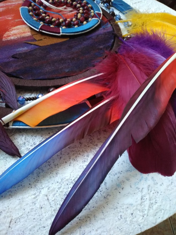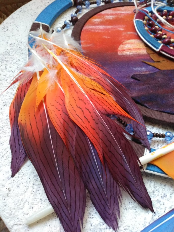 В ловце использованы перья петуха, цесарки, гуся и павлина.