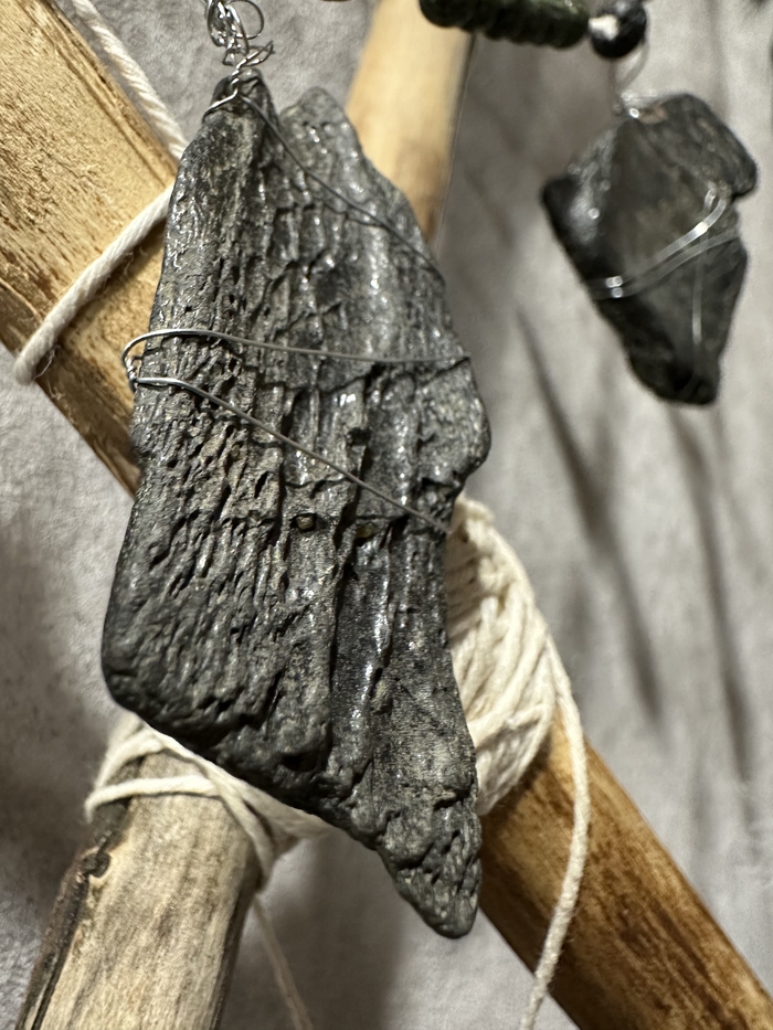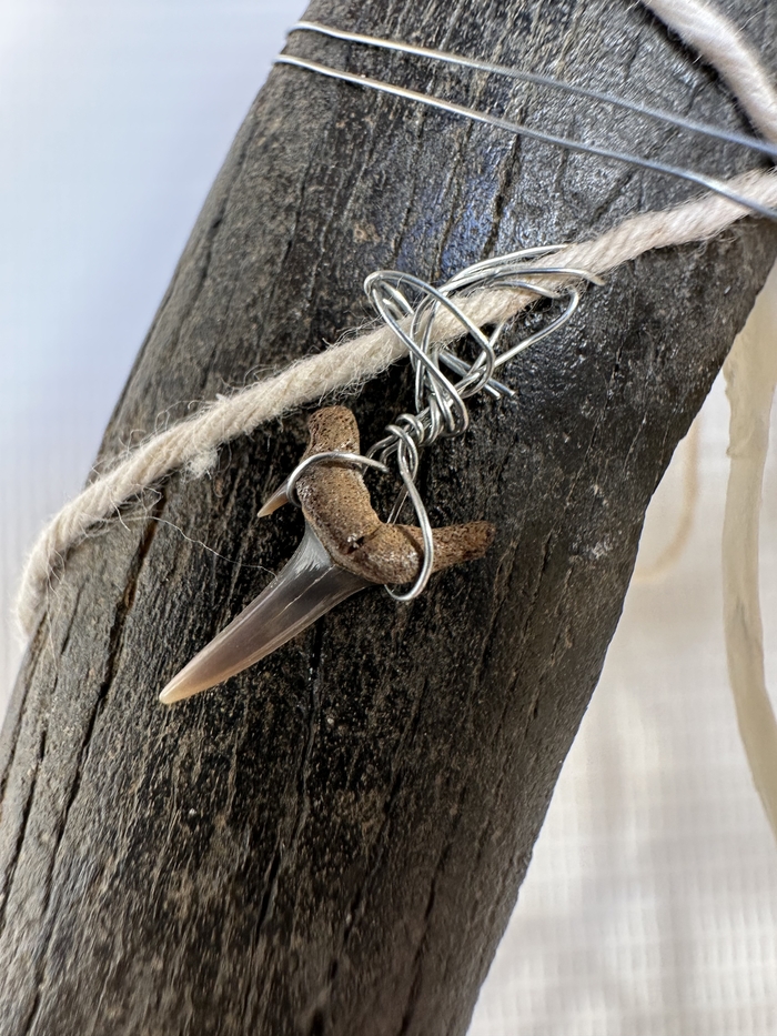 В качестве декора я использовала окаменевшие зубы акулы эостриатоламии (eostriatolamia) , приблизительный возраст 90 млн лет и найденные в Саратовской области