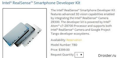 Цена смартфона — 399 долларов. Именно за эти деньги разработчики могут предсказать аппарат на сайте Intel.