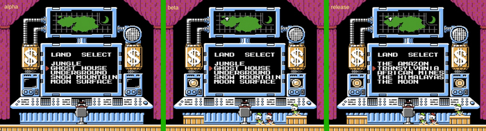 4. Спрайты инопланетян на уровне The Moon тоже изменились в последний момент. Видимо, их решили сделать более похожими на инопланетян из серии Утиных Историй "Where No Duck Has Gone Before".