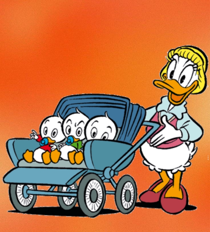 Его племянники — тройняшки, которых различают по разному цвету одежды. Слушать, как ругается селезень с сорванцами, можно бесконечно. Изначально Делла Тельма попросила брата присмотреть за детьми, пока их отец не выйдет из больницы. По неизвестным причинам зять Дональда до сих пор не объявился.