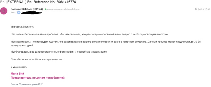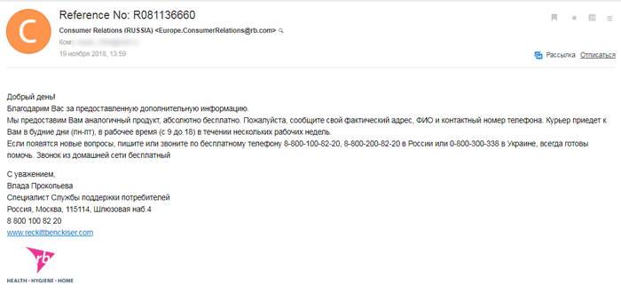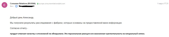 Тут я такой прям воодушевился, подумал, что они действительно серьёзно отнеслись к моему письму, все фотографии сделал, на вопросы ответил, что пирсинга нет, ногти подстрижены, всё пучком, и отправляю второе письмо. Ну, думаю, раз номер партии и т.д. запросили информацию, действительно проверят и предотвратят повторения таких случаев.