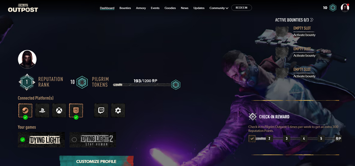 PS: К слову, по поводу бонусных кодов https://dockets.dyinglightgame.com/