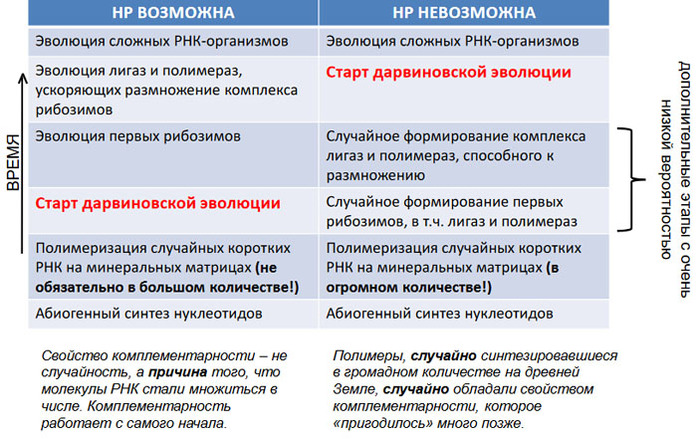 Таблица. Почему неферментативная репликация (НР) крайне важна для оценки вероятности абиогенеза