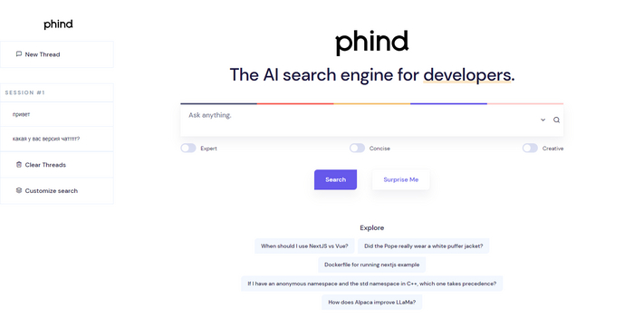└ Поисковик на основе GPT 3, но настаивает на том, что не использует конкретно одну модель GPT и можно предположить, что там GPT 3.5, либо в скором времени стоит ждать обновлений. Особенно будет полезен для тех, кто хочет отдохнуть от Google или Yandex и попробовать, что-то новое. Для комфортного использования советую пройти регистрацию.