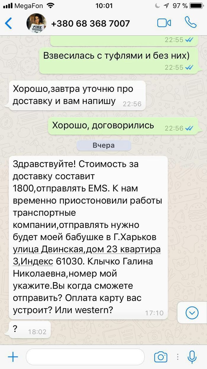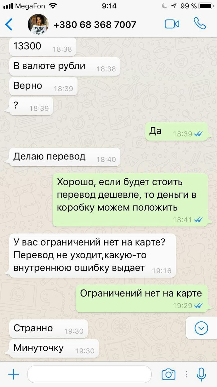 Началось всё с того, что решили с женой выставить туфли на продажу в Avito и Юле (туфли новые, бренд, цену выставили намного ниже рыночной). Спустя нескольких дней приходит сообщение на номер супруги в WhatsApp (далее уже от её имени буду общаться с мошенником):