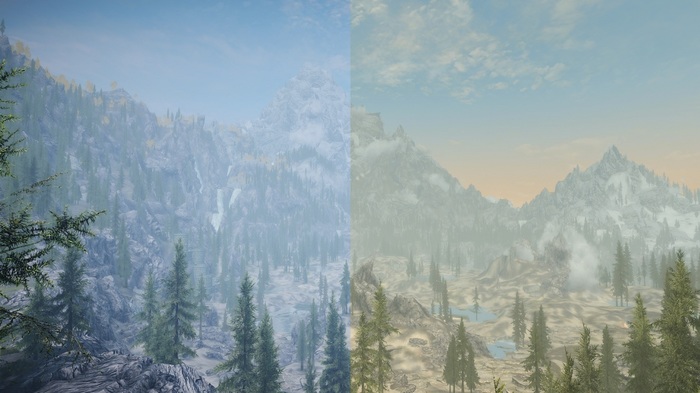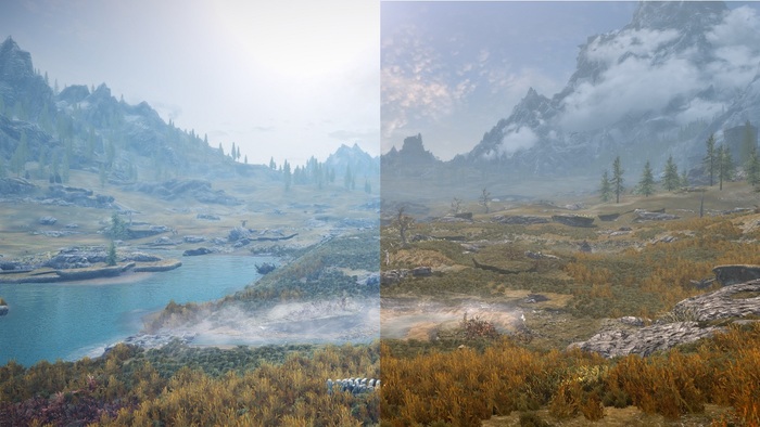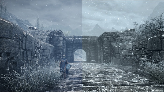 Skyrim Special Edition с шейдрами ENB и без. 2