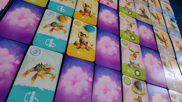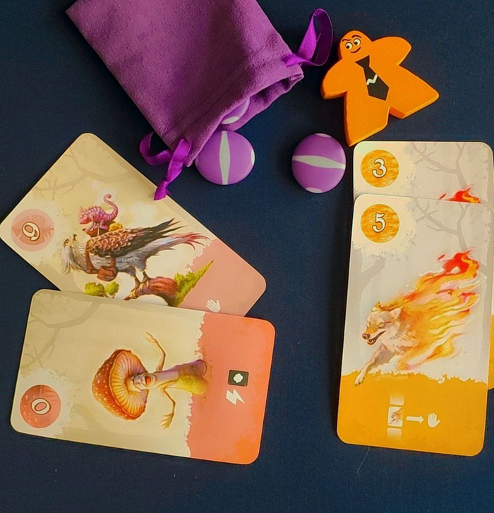 В начале игры все игроки получают по 5 керамических камней индивидуального цвета. В ходе игры вы можете использовать эти камни, чтобы делать ставки на определенных существ, в чью победу вы верите. Чем раньше сделана ставка, то есть чем выше ряд, в котором находится камень вашего цвета, тем больше очков он принесет в конце игры. Один раз за игру (только в первом раунде!!!) вы даже можете сделать секретную ставку, выбрав в закрытую карту с руки. Есть и другие способы обеспечить преимущество ваших фаворитов, например, использование уникальных способностей существ, «диких» карт Хамелеонов и мощных карт деревьев.