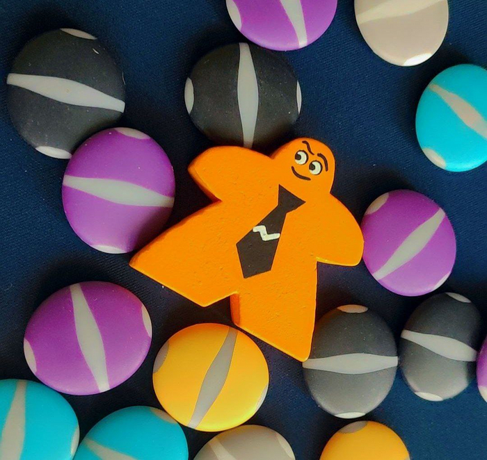 Керамические «Камни» красивы и тяжелы, добавляют приятные тактильные ощущения в чистой карточной игре. К каждому из 5 цветов игрока также прилагается (совершенно ненужный), качественно исполненный фетровый мешочек. В них нет необходимости, потому что они не служат никакой внутриигровой цели.