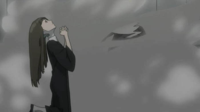 Пока что самое мрачное аниме, которое я видел. Причём, не по событиям и не по персонажам, а только по атмосфере. И вроде бы люблю я мрачность, пусть не всегда, но периодически, но…