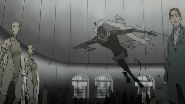 Чувствуете? Detroit: Become Human, отчасти «Яблочное зернышко» и множество подобных фильмов, сериалов, книг и игр про свободу искусственных созданий против диктатуры жестокосердных людей. Нет. Такой участи Ergo Proxy избегает быстро и даже очень быстро.