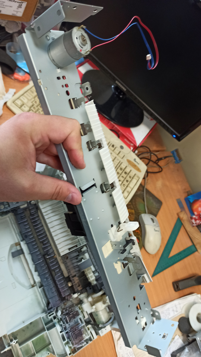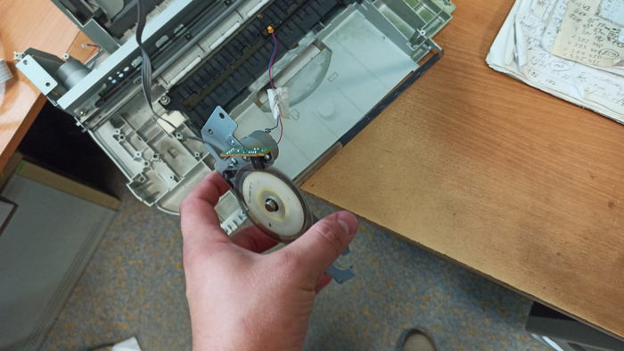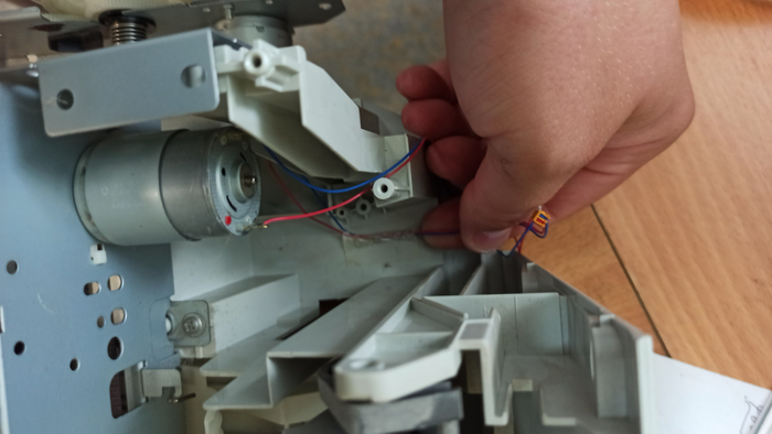 А вот и ценная вещь: сервопривод протягивания бумаги? Под большим пальцем находится механический концевой выключатель и провод для юсб гнезда, для печати с фотоаппаратов