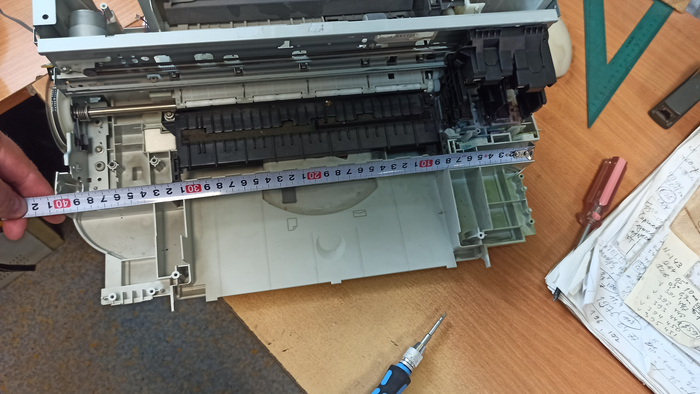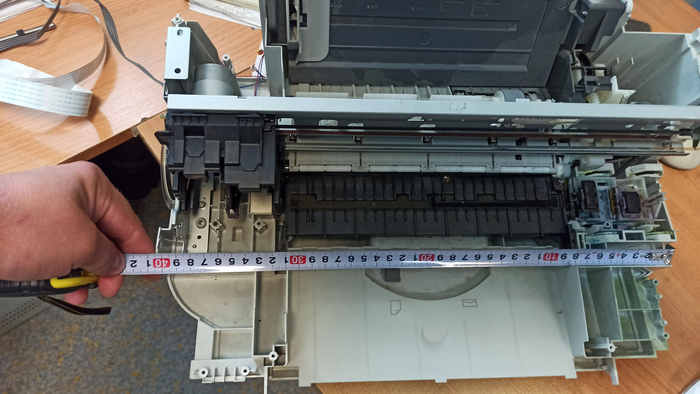 Теперь каретка печатной головки с рамой, сколько она проедет?
