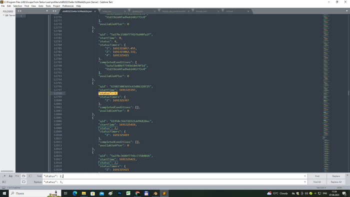 И так повторяем: Получили квесты -> В файле заменили статус -> Забрали награду -> Получили новые квесты.