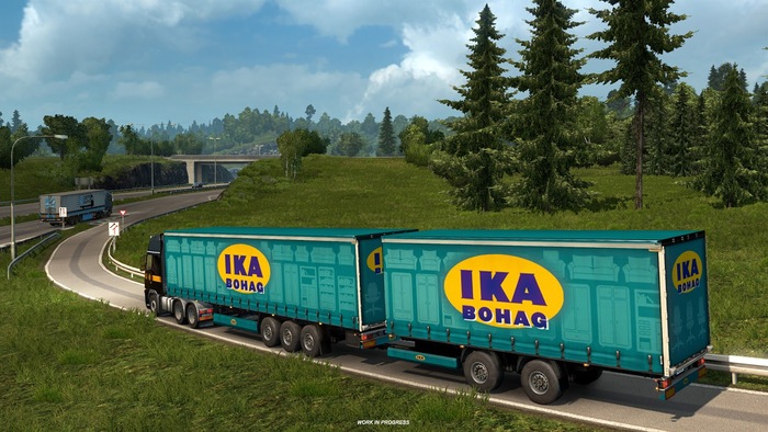 Также, важной частью игры про грузоперевозки являются прицепы. И в ЕТС их довольно таки много. Для различных типов грузов мы можем выбрать: шторный прицеп, фургон, платформу, щеповоз, кормовоз, зерновоз, лесовоз, цистерну, контейнеровоз и рефрижератор.