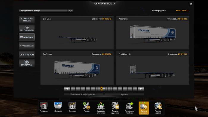 Игроки в ETS 2 так же имеют возможность приобрести разнообразные грузовики, а также выбирать из различных типов прицепов. Этот ассортимент включает в себя полуприцепы с заводским кузовом, рефрижераторы, цистерны и тд. Каждый вид прицепа предназначен для перевозки определенных категорий грузов, что позволяет игрокам создавать свой уникальный опыт перевозки в зависимости от выбранного транспортного средства и типа груза.