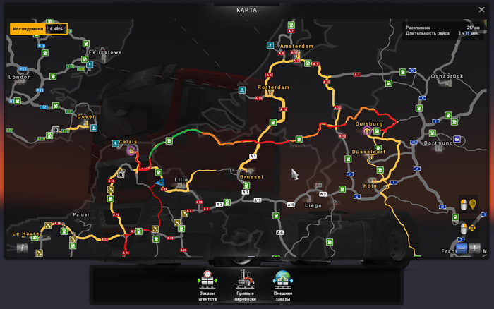+ Открытый мир. В игре есть больше 60 городов Центральной Европы. Их связывают дороги, которые проходят через леса, поля, населённые пункты и горы. Чтобы доставить груз, можно выбрать маршрут навигатора или составить свой. Для некоторых маршрутов понадобятся порты и железнодорожные вокзалы.