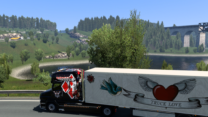 Здесь собраны и приближены к реальности самые известные мировые марки большегрузов, вроде MAN, Ford и Mercedes. А также есть возможность установить с помощью модов дополнительные автомобили как грузовые, так и легковые, и разнообразить и без того нескучную игру. Но разогнаться на трассе не получится, и не только из-за сложности в управлении, дорожное движение в ETS оставляет желать лучшего — трафик постоянно забит водителями легковушек или ограничением скоростного режима.