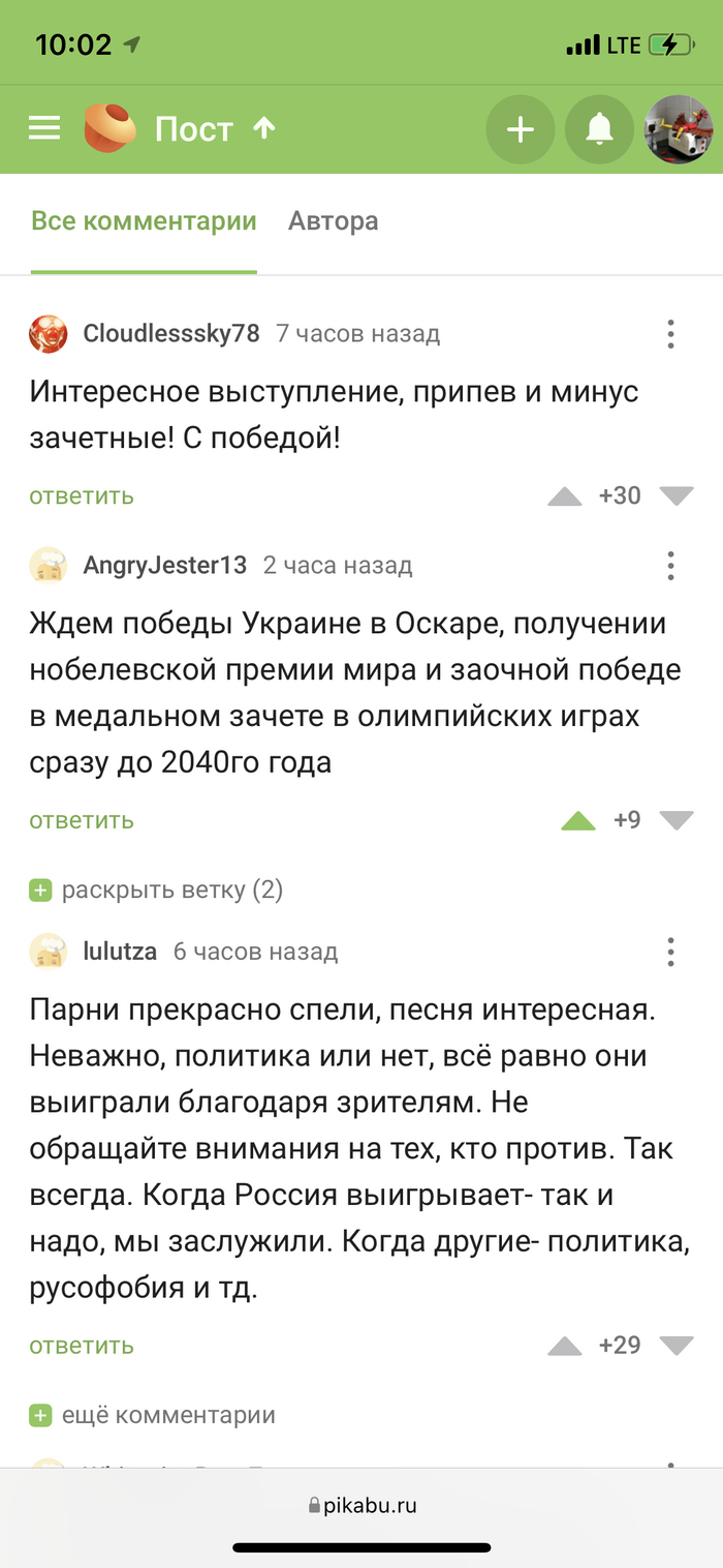 Вот не смотрел, не было желания как и у многих тут присутствующих, просрали конкурс песен, превратив его в политические пляски...