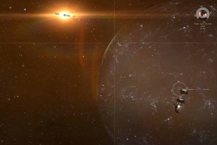 Конечно, мой проход через ворота не остался незамеченным, и противник сделал свое грязное дело – надул бубль. А в локале никого из противников кроме этого корабля! Читай, в системе три человека, я, противник и какой-то союзник неизвестно где. Так что на воротах мы секунд тридцать, а то и минуту гарантированно будем вдвоем. Дуэль, тысяча чертей!