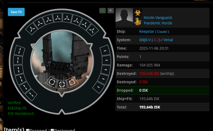 Winter co уничтожили кипстар Pandemic Horde в регионе Venal который предполагался использовать для перемещения.