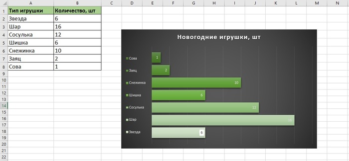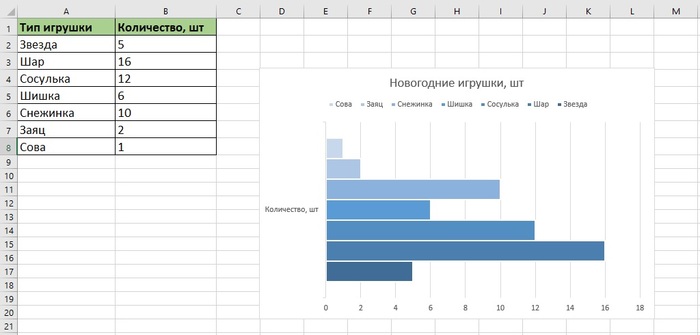 Мы выбрали линейчатую диаграмму, но в текущем виде она перестала быть достаточно информативной.