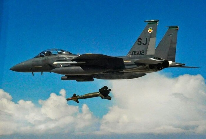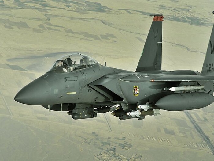 F-15E/F «Strike Eagle»: Одна 20-мм шестиствольная пушка М61А1 Вулкан с 512 патронами. Боевая нагрузка — 11113 кг. размещенная на 9 внешних подвесках.