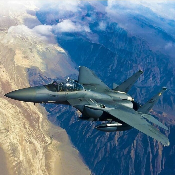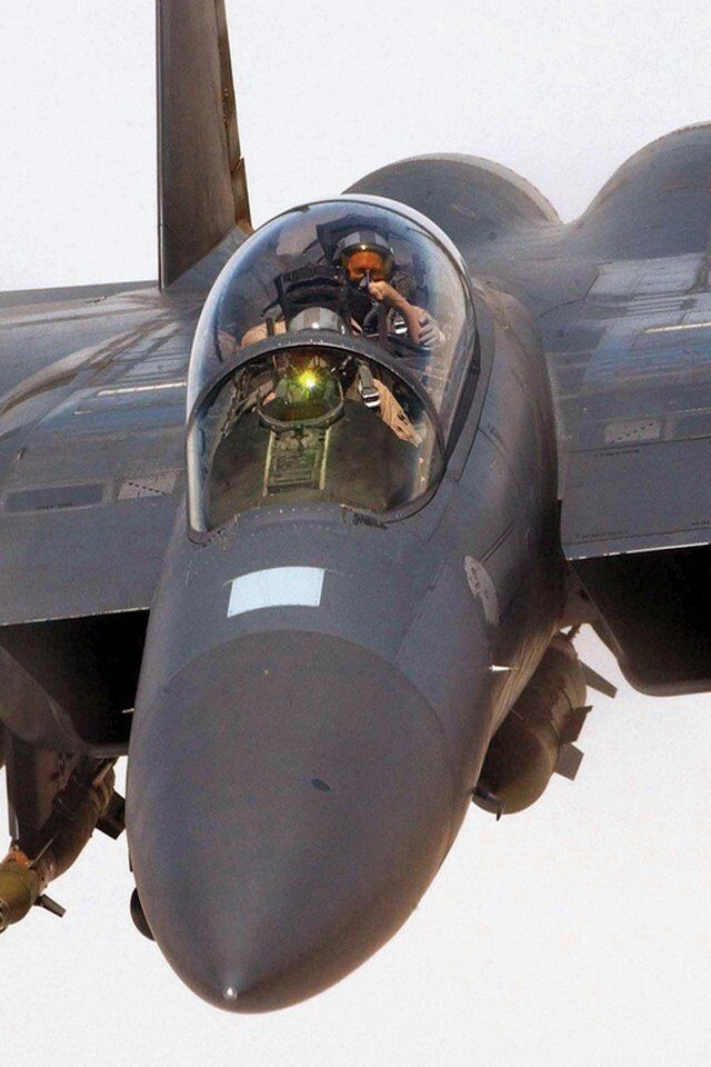 F-15E Strike Eagle — двухместный многоцелевой всепогодный ударный истребитель созданный на основе F-15D. Серийное производство начато 11 декабря 1986 года. Первые самолеты стали поступать в ВВС на авиационную базу Luke в апреле 1988 года. Поставки самолета закончены в 1994 году, и в 1998 году закончены замены устаревших истребителей на F-15E. Практически полностью заменена электронная «начинка», в особенности системы управления оружием. На F-15E установлен центральный компьютер IBM Honeywell ASK-6, пульсово-доплеровская РЛС Hughes APG-70 c системой управления оружием AWG-27 с системой навигации и прицеливания LANTIRN.