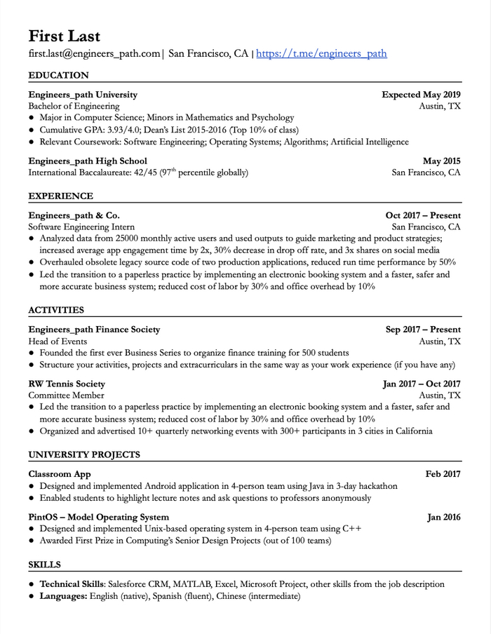 4. Платный шаблон для студентов с разделом под проекты. Подходит под ATS.