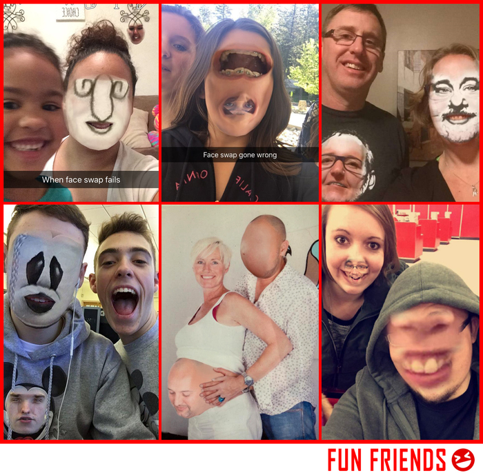 28 FunFriends Приколы FaceSwap 6 лет назад когда приложение FaceSwap (обмен лицами) чудит. Показать полностью 6 [моё] Юмор Face swap Лицо Прикол Длиннопост Баг