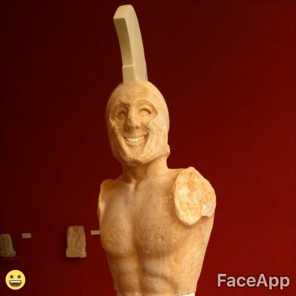 P.S. Пока ещё делаю заключительный пост про Спарту. Но вот тоже пример издевательства с помощью FaceApp. В музее города стоял бюст гоплита, на лице которого была лёгкая улыбка, но теперь... Я бы это назвал так - "Когда узнал, что наступают персы".