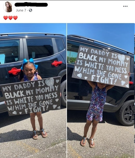 Белая женщина из Пенсильвании постила в фейсбук о том, как она гордится иметь детей от чёрного отца, также она сделала пост с тремя сердцами, на котором была изображена девочка смешанной расы со знаком