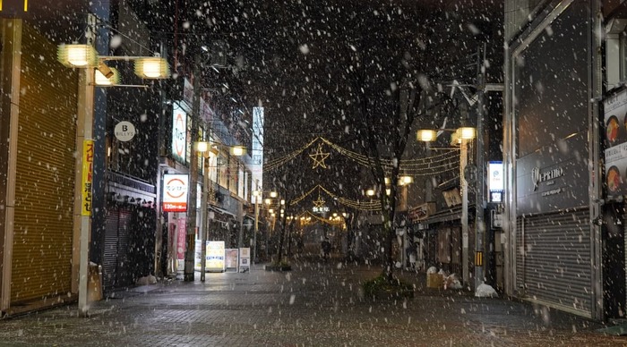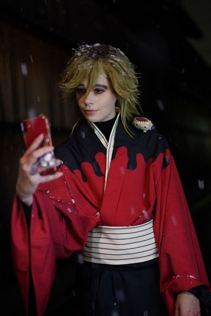 Мы с друзьями приехали в Киото на выходные на фестиваль в музее поездов (отпишите в комментариях если интересна отдельная статья о поездке!), подруга была в роли Энму, т.к. он идеально подходил под тематику и локацию ивента, я же взяла шестую Высшую Луну Доуму скорее удобства ради и чтобы походить за компанию. За день до мероприятия мы приехали в Киото и решили поужинать. Т.к. прибыли и заселились мы довольно поздно, из заведений работали в основном изакаи (пивнушки). И вот выходим мы из бара после полуночи и тут внезапно начинается снег!