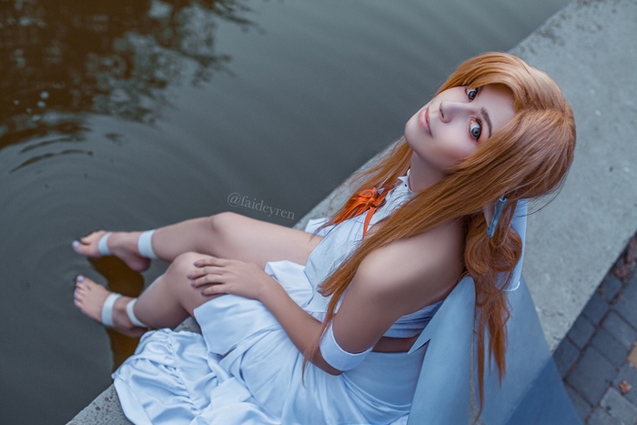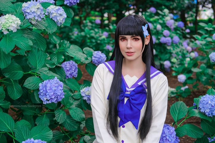Мне хотелось сделать его максимально канонично, начиная от оттенка волос, заканчивая самим костюмом. Найти подходящую локацию тоже повезло - я очень обрадовалась, найдя пруд с лотосами и каноничными мостиками! Мы спешили успеть все пока не отцвели лотосы, в июле в Японии очень жарко и душно, поэтому косплеить летом я не очень люблю, но ради такого дела можно было и потерпеть)