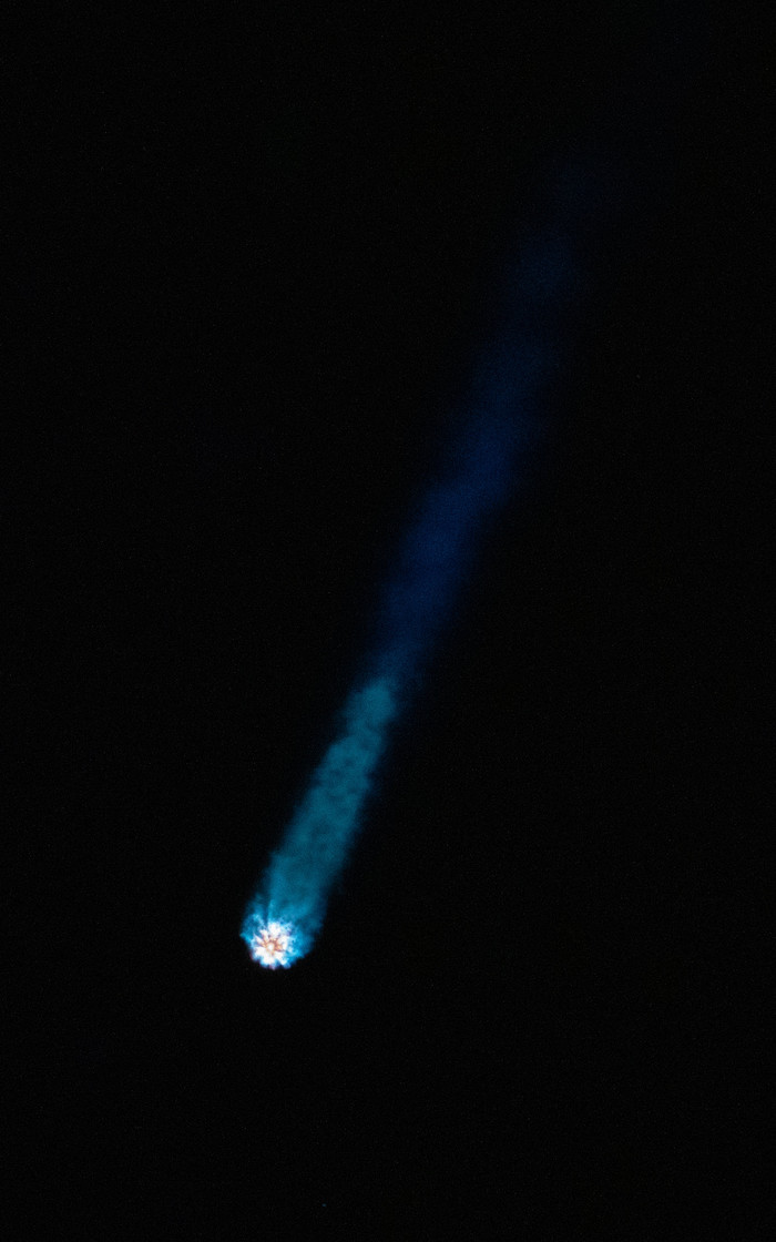 — Мне очень повезло, что выходя из своего скафандра и глядя в окно, я случайно заметил нашу 2-ю ступень Falcon 9! Она летела вместе с нами по параллельной траектории, но ниже... два крошечных объекта в 200-х км над Землей! Через время наши пути разошлись. Спасибо ей за полёт!