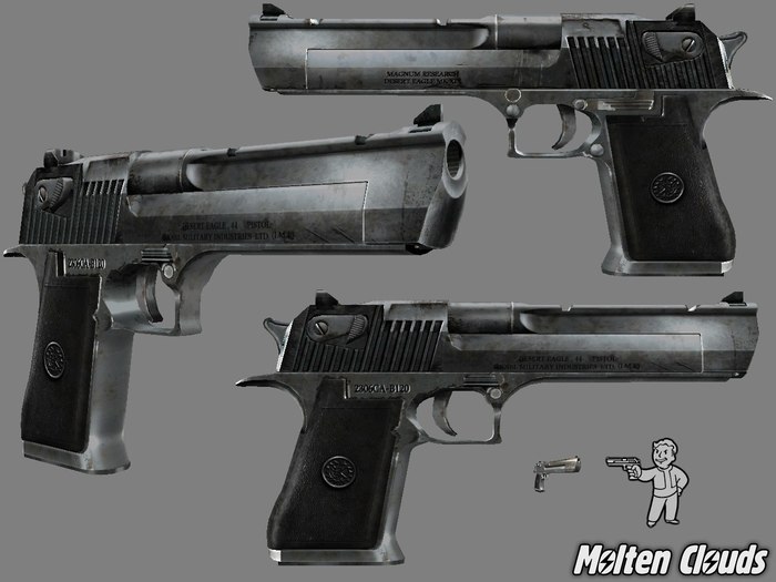 В Fallout 3 это был сильно измененный Desert Eagle, однако в новой игре пистолет потерял всякое сходство с "Пустынным орлом": был полностью удален предохранитель и в целом изменен дизайн.