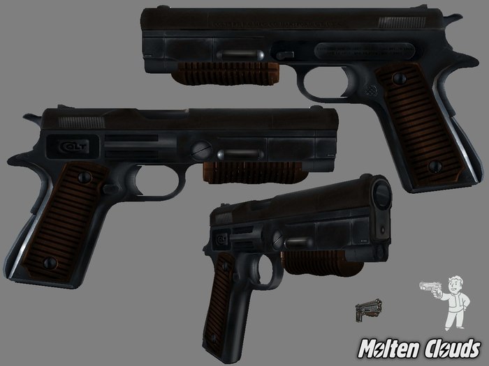 Описание:Довоенный пистолет, состоявший на вооружении полиции и армии США. Имел столь широкое распространение и столь высокую надежность и износоустойчивость, что и до сих пор повсеместно используется по всей стране, в том числе и в Содружестве. К достоинствам следует отнести малый вес, крайне низкую стоимость выстрела в VATS, возможность оснащения глушителем, невысокую отдачу и доступность боеприпасов. Из недостатков — относительно невысокий урон и невозможность модернизации в карабин.