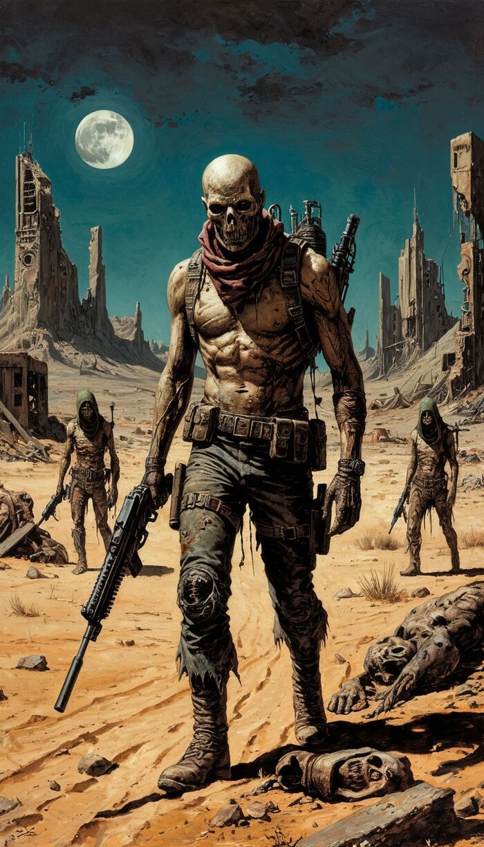 Дни шли. Пустошь гудела вокруг. Соня лежала, глядя на него, пока её батарея не начала истощаться. Последнее, что она видела, прежде чем её системы отключились, — его череп, ухмыляющийся ей, как будто он знал, что они всё равно были свободны. Даже в смерти. Даже в ржавчине.