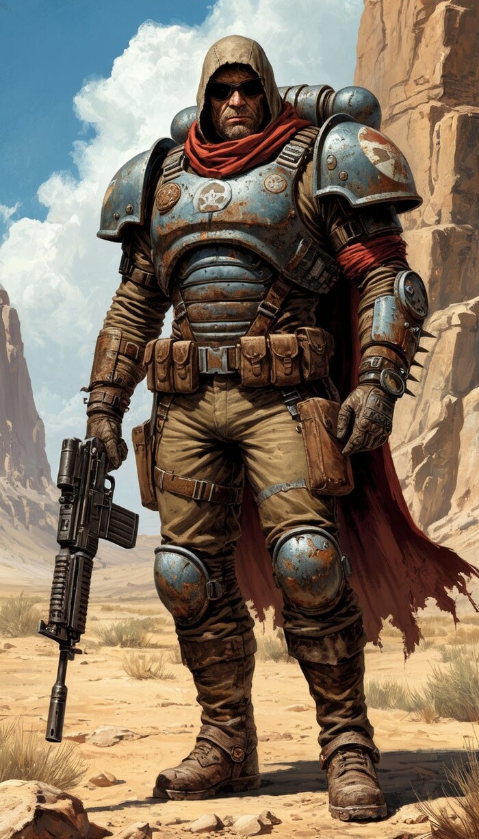 Но пустошь не прощает. Через неделю их выследили. Не рейдеры — хуже. Охотники из Братства Стали, в силовой броне, с лазерными винтовками, что жгли воздух. Кувалда дрался, как зверь: разорвал двоих, их броня треснула, как орех, но третий выстрелил в упор. Плазма прожгла его грудь, и он рухнул, как поваленный дуб, кровь хлынула, чёрная, густая, как масло.