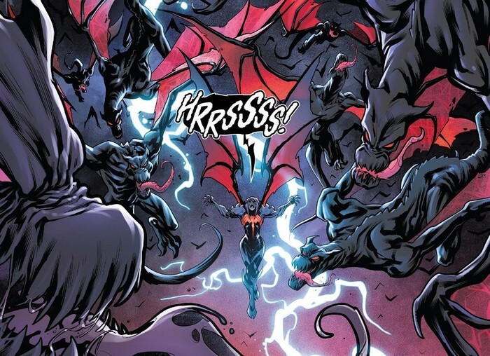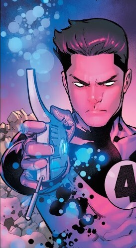 А значит, дело за комиксом Fantastic Four #30 за июнь 2021 года, от Дэна Слотта и Зи Карлоса. «Окнулённые» Человек-Факел и Существо приближаются к дому №4 на Янси-стрит, и работающий в это время с Мистером Фантастикой в лаборатории Человек-Паук предупреждает, что Бен уже был обращён. Нужно как-нибудь защитить штаб-квартиру...от тех, кто знает все способы проникновения в неё. Между тем, у Врат Вечности новые трагедии – симбиоты обратили Валерию Ричардс! И у неё всё ещё пульт управления Вратами, так что даже эвакуироваться с их помощью не выйдет. Следуя примеру Темнейшей Ночи вселенной DC, кнуллифицированные герои всячески разводят «чистых» на эмоции. Валерия, например, издевается над Франклином. «Ты самый бесполезный участник Четвёрки! Ни божественной силы, ни супероружия, ни гениального разума! Ты никто, мы тебя не выпнули из команды чисто из жалости!». Результат...не тот, на который симбиоты рассчитывали. «Раз я ничто, это значит, что мне нечего терять!». Франклин выхватывает электрическую пушку, которую обронил Бентли, и переходит в режим Думгая с примесью Серьёзного Сэма!